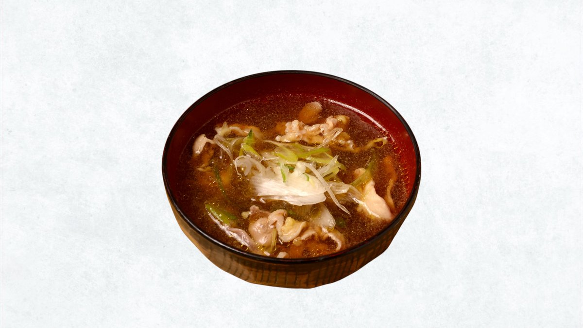 鶏の旨みが広がる、麺なしの温かい汁物です。