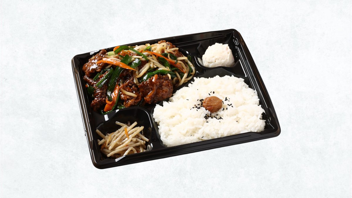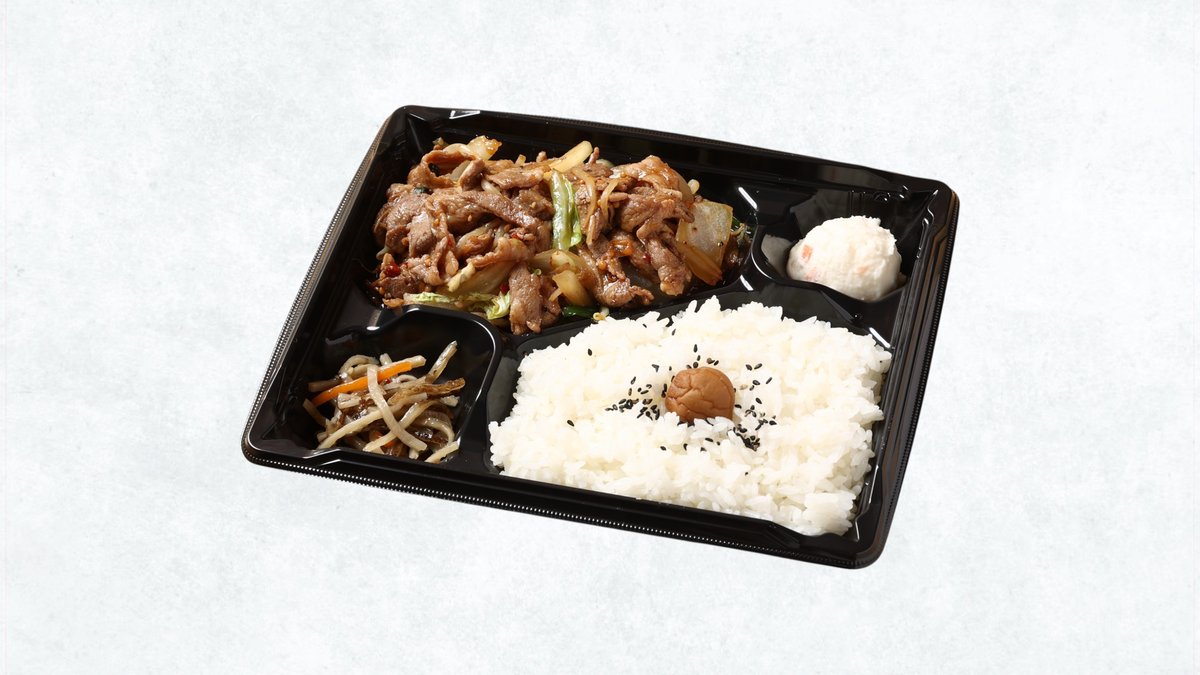 豚肉と味噌だれの相性が抜群の豚みそだれ弁当。副菜も入っており、バランスの取れたお弁当です。