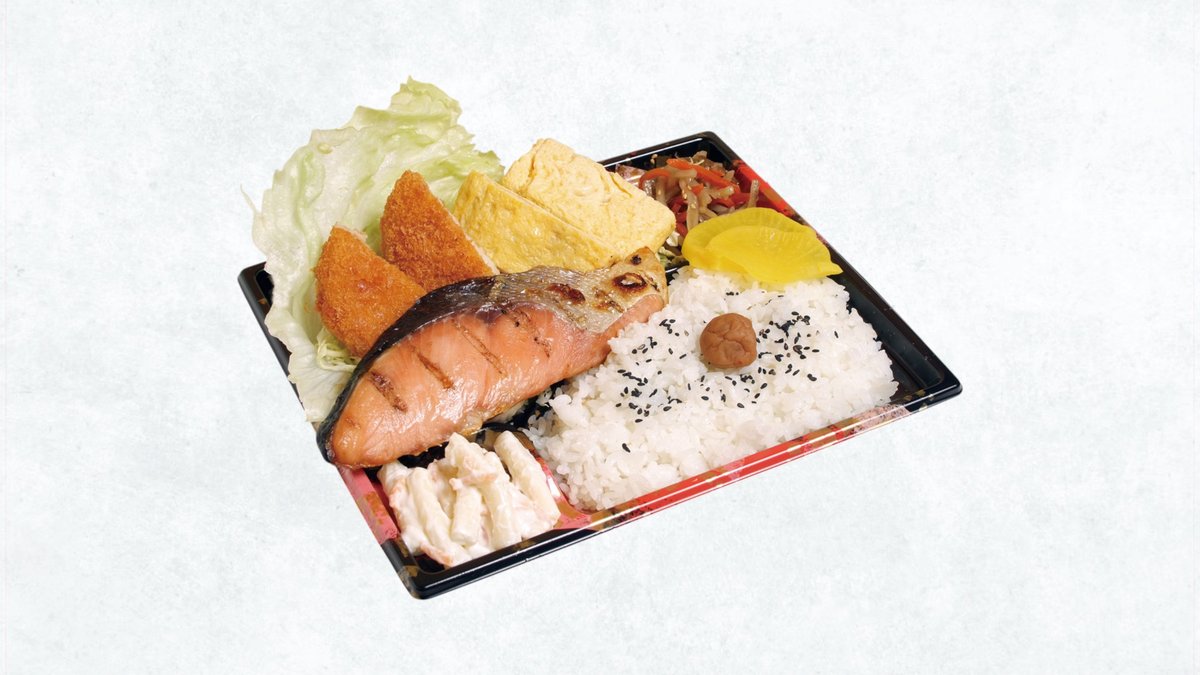 脂ののった焼き鮭をメインに、副菜も充実したお弁当です。