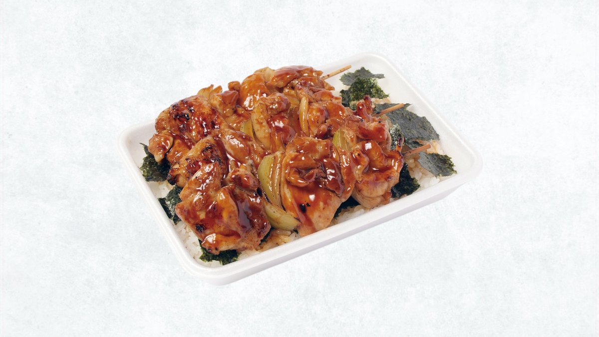 香ばしく焼き上げた鶏串とご飯の満足弁当です。
