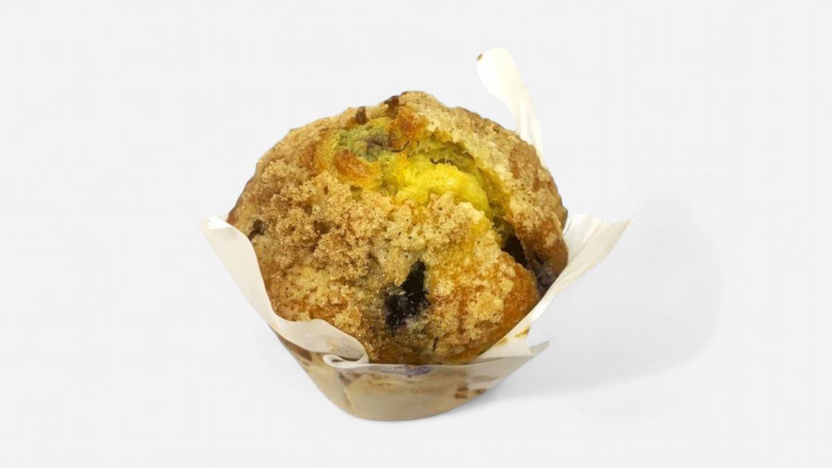ブルーベリーマフィンにレモンの果肉と皮が入ってます。ほんのり酸っぱく、ほろ苦い。甘みの少ないさっぱりとしたマフィンです。