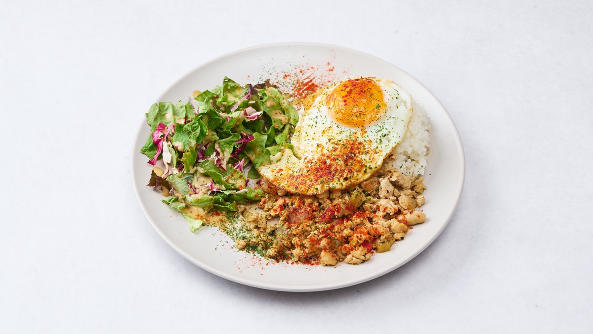 バジルとひき肉炒めの相性がいいごはんが進むプレートメニューです!