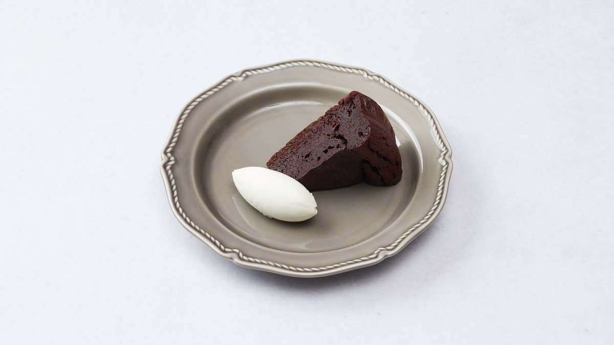 名前はフランス語で、直訳すると「焼いたチコレート菓子」という意味になり、本来は焼いて作ったチョコレート菓子全般を指します。日本では、チョコレートを生地に混ぜ込んで焼いたケーキがガトーショコラと呼ばれています。店では一般的なガトーショコラに比べしっかりした濃厚さを出した、生チョコのような仕上がりです。