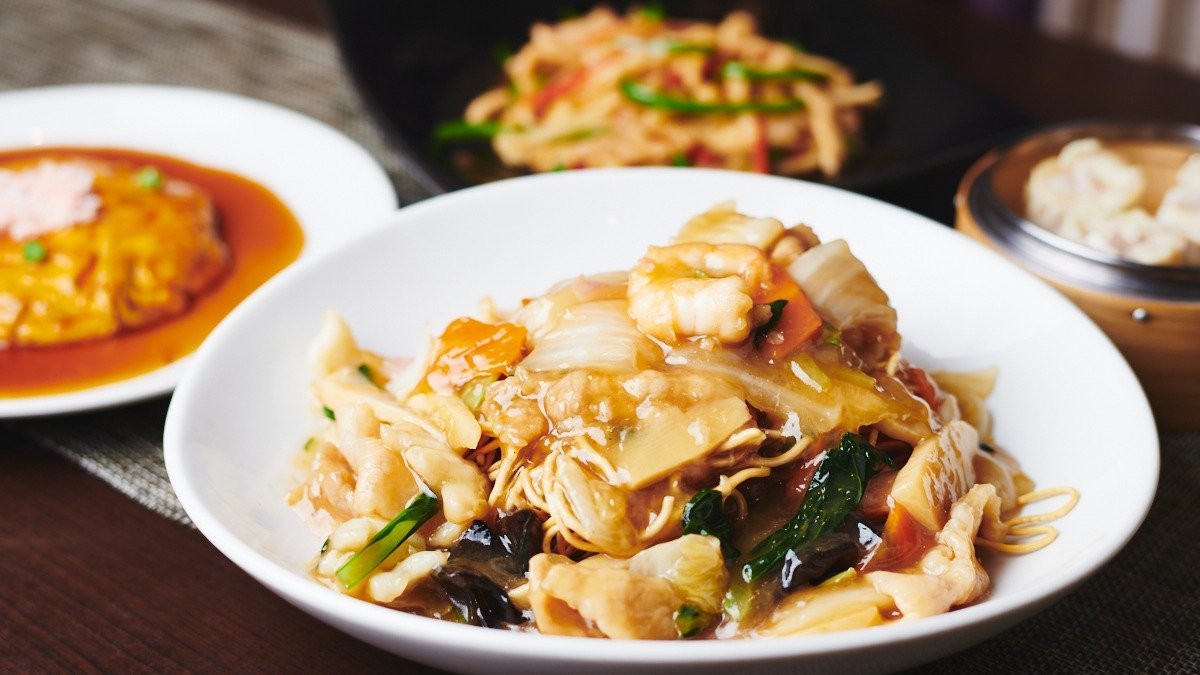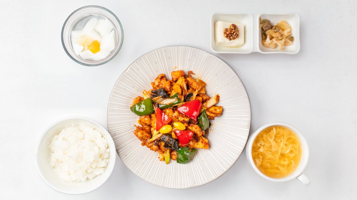 人気メニューをお弁当にしました。オプションでスープと杏仁豆腐を追加できます。