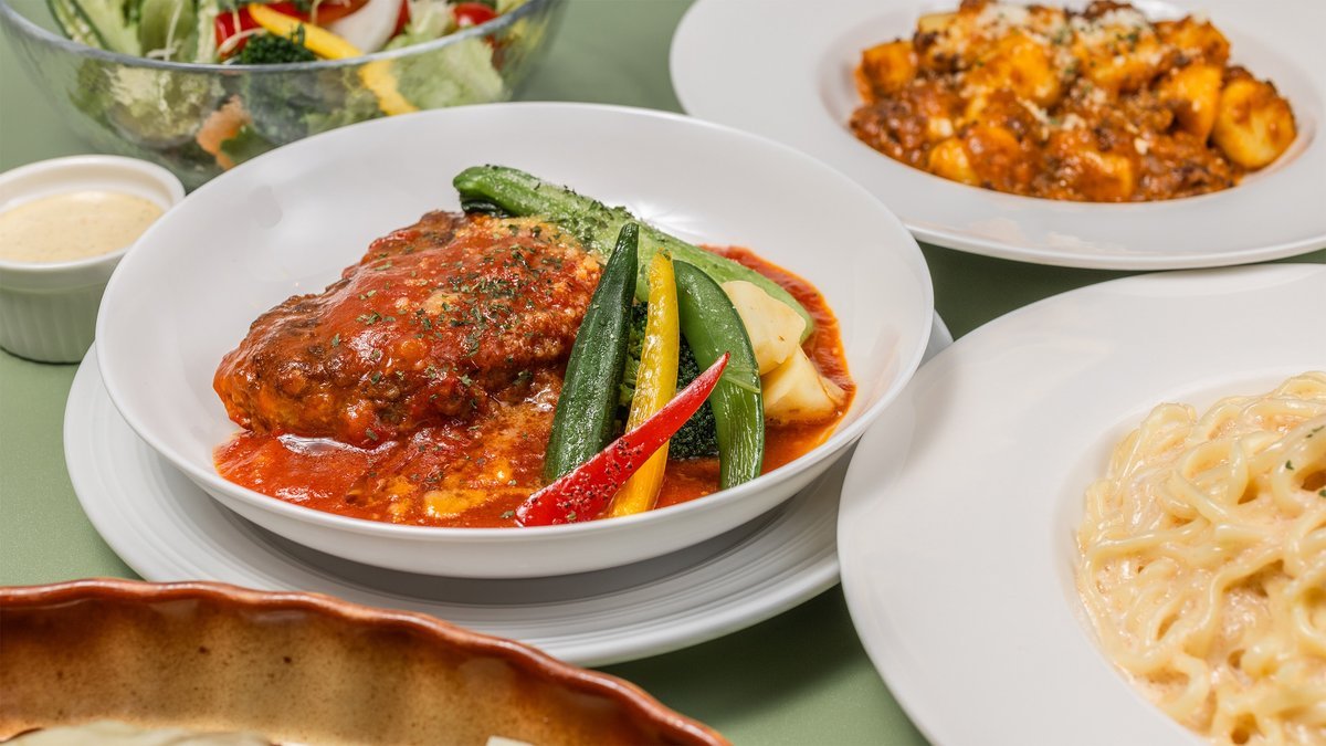 【No.1】十勝豊西牛100%ハンバーグとモッツァレラチーズのオーブン焼き(ライス付き)