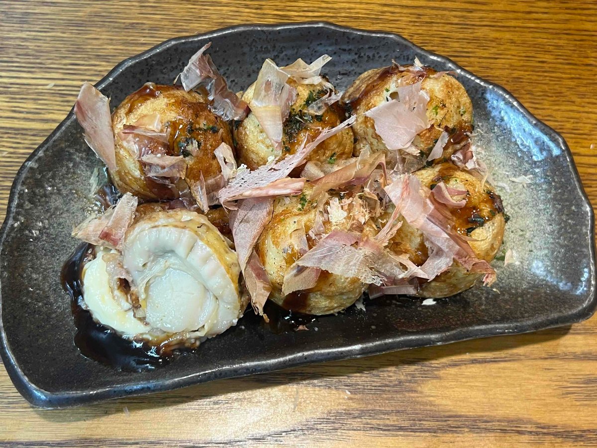 タコの代わりに北海道産ホタテが丸ごと入った贅沢な一品です。