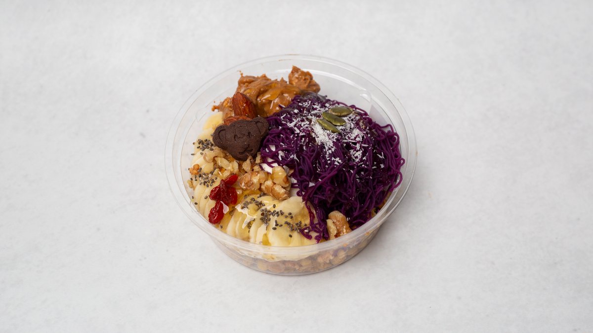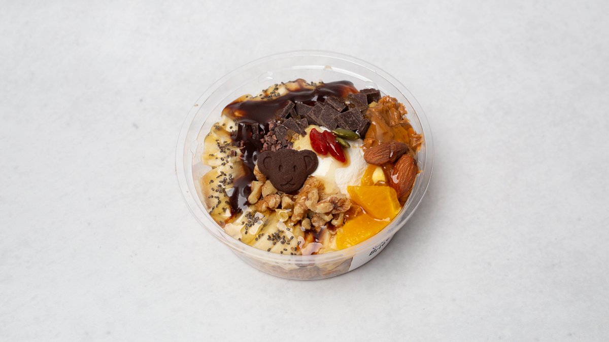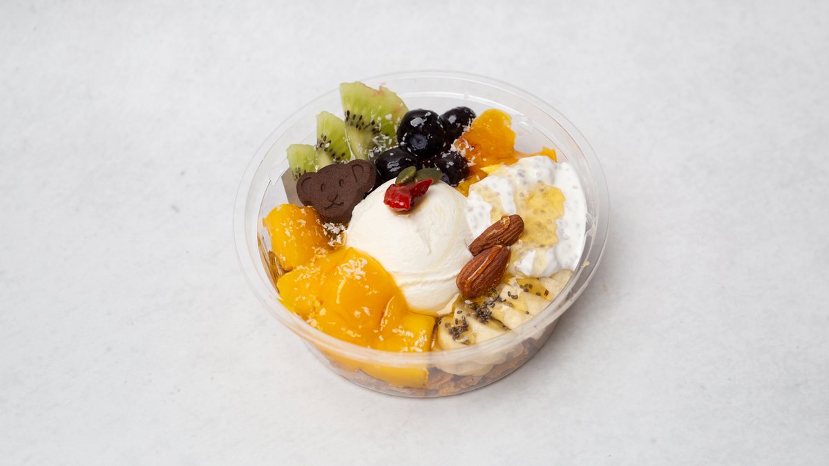 もっちりとしたグリークヨーグルトとフルーツ&スーパーフードをたっぷり使い、健康に気をつかった満足感のあるヘルシースイーツです。 【スーパーフード】 チアシード・クコの実・パンプキンシード・アーモンド・カカオニブ・ココナッツ・クルミ・ピーナッツバター入りです。 国産はちみつを使用しています。