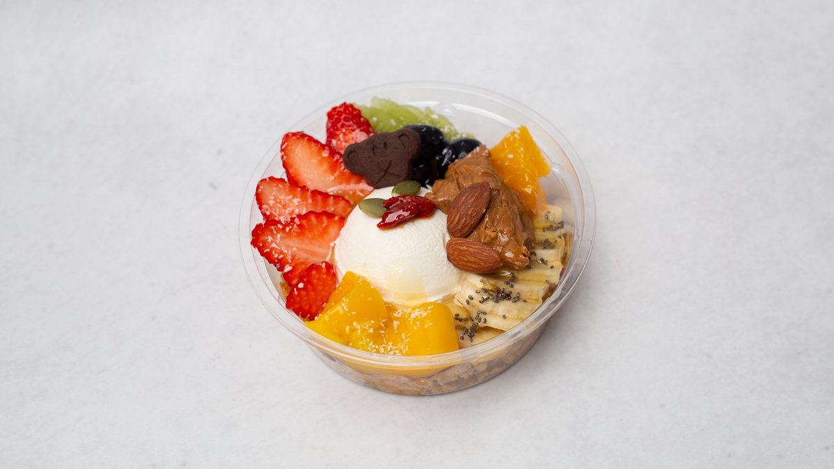もっちりとしたグリークヨーグルトとフルーツ&スーパーフードをたっぷり使い、健康に気をつかった満足感のあるヘルシースイーツです。 【スーパーフード】 チアシード・クコの実・パンプキンシード・アーモンド・カカオニブ・ココナッツ・クルミ・ピーナッツバター入りです。 国産はちみつを使用しています。※写真はフルーツサラダ(R)です。