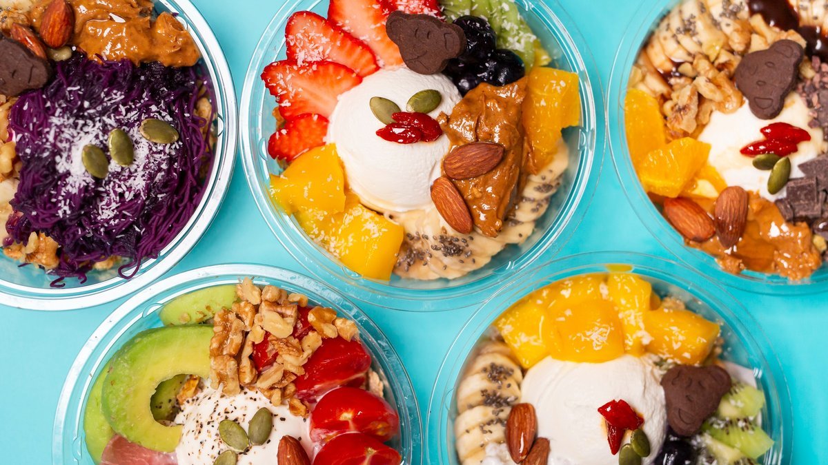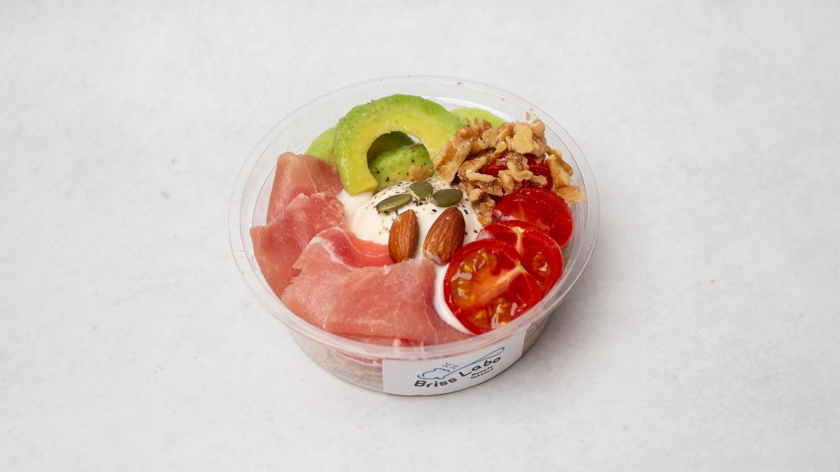 もっちりとしたグリークヨーグルトとフルーツ&スーパーフードをたっぷり使い、健康に気をつかった満足感のあるヘルシースイーツです。 【スーパーフード】 チアシード・クコの実・パンプキンシード・アーモンド・カカオニブ・ココナッツ・クルミ・ピーナッツバター入りです。 国産はちみつを使用しています。※写真は生ハム&アボカドサラダ(R)です。