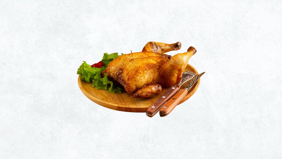 じっくりと焼き上げ、皮は香ばしく、肉はジューシーに仕上げたローストチキンです。