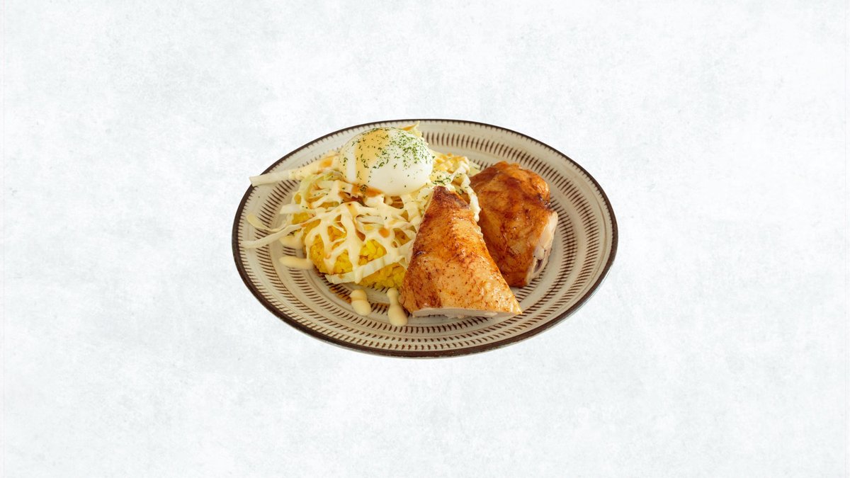 3ピースローストチキンが乗ったお得なタコライス。ミートソースにチーズを乗せたメキシコ風ライスで、これも絶対うまいです。※写真は2ピースです。 / A great value taco rice set topped with 3 pieces of roast chicken. Mexican-style rice with meat sauce and cheese—this is also definitely delicious. *Photo shows 2 pieces.