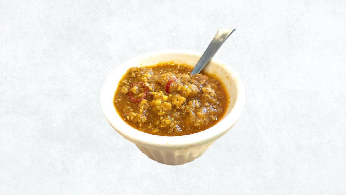 手間暇かけて作る自家製辛口鶏ミンチのカレーソース。美味しいです。 / A delicious, homemade spicy chicken mince curry sauce made with great care.