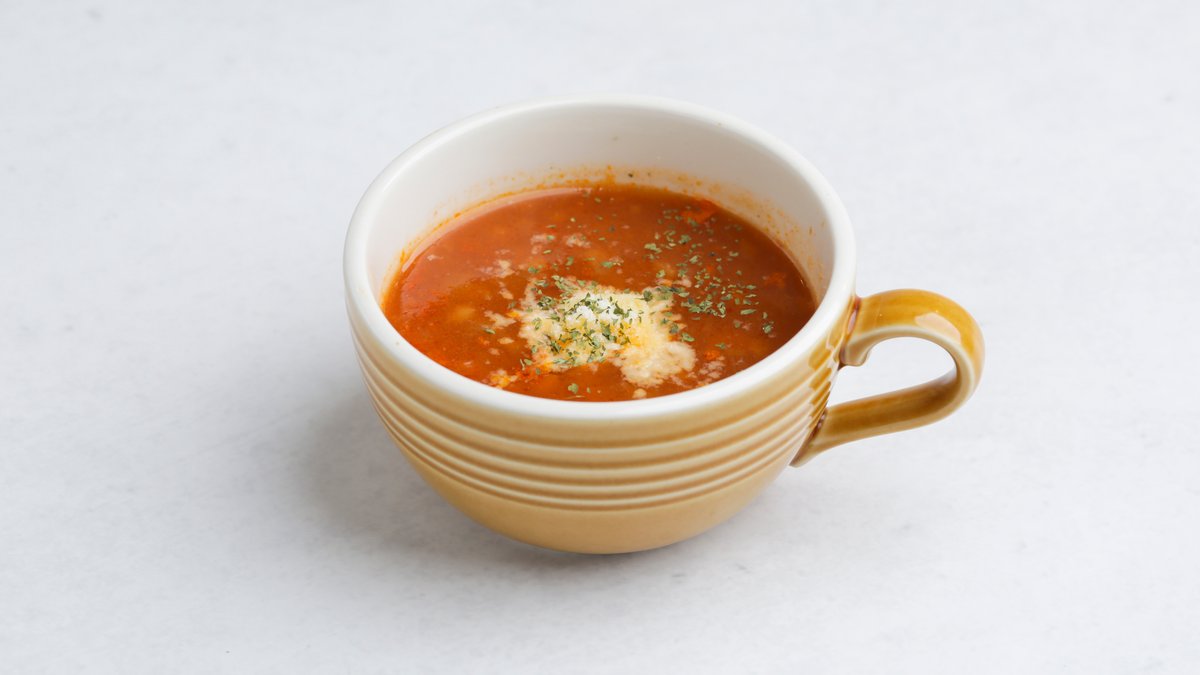 野菜の旨味がたっぷり溶け込んだ、具だくさんのトマトベーススープです。Sサイズ。