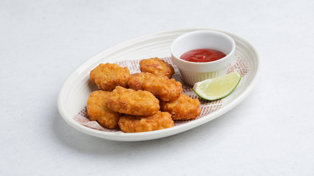ジューシーで柔らかな鶏肉を衣で包んで揚げました。お子さまから大人まで楽しめます。