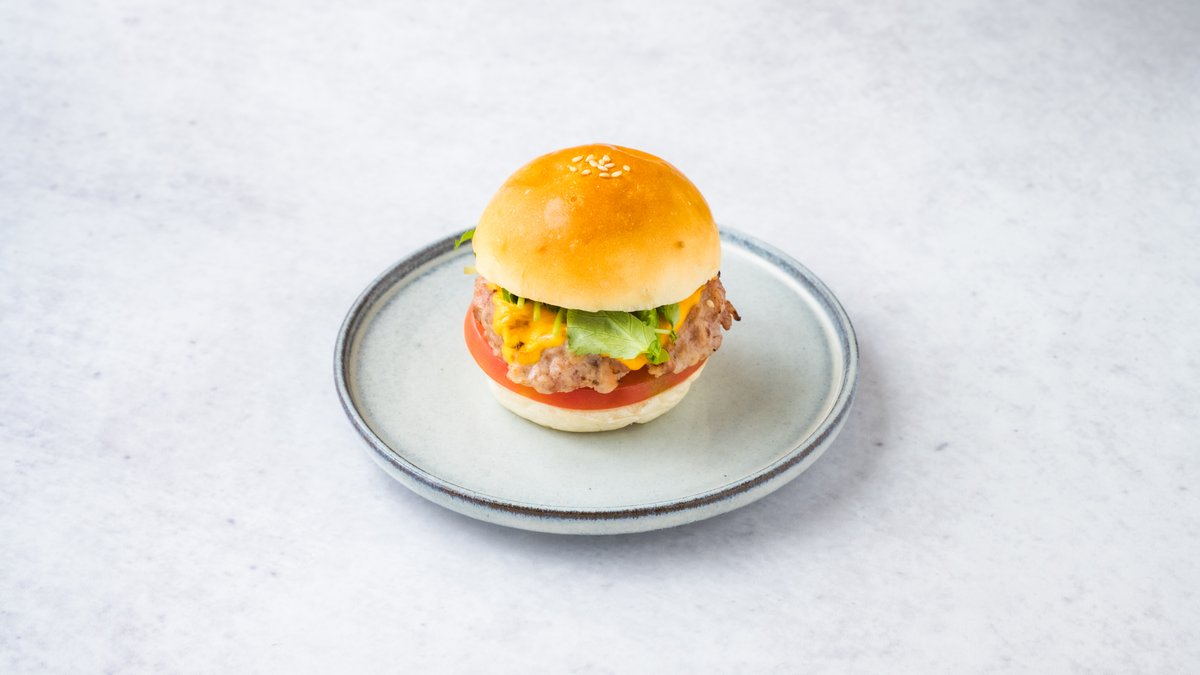 100%鴨肉パティでつくるミニサイズチーズバーガ-です。