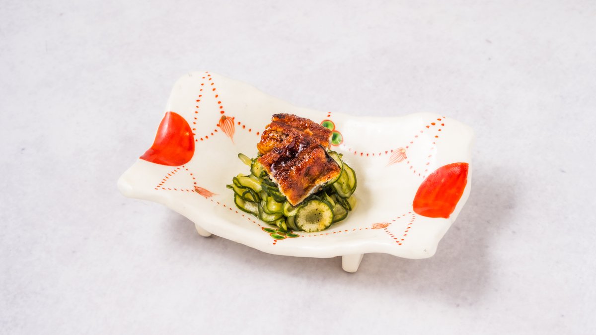 炭火で丁寧に焼き上げた鰻と、さっぱりとしたきゅうりを酢の物にした一品です。鰻のコクときゅうりの爽やかさが食欲をそそります。