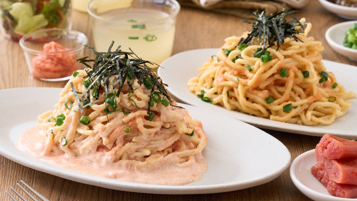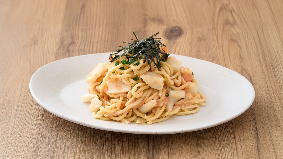 【芳醇な明太子生パスタ MENTAI TABLE】 特徴は低加水麺!濃厚で香り高い明太子ソースがたっぷり絡んだ和風生パスタです。