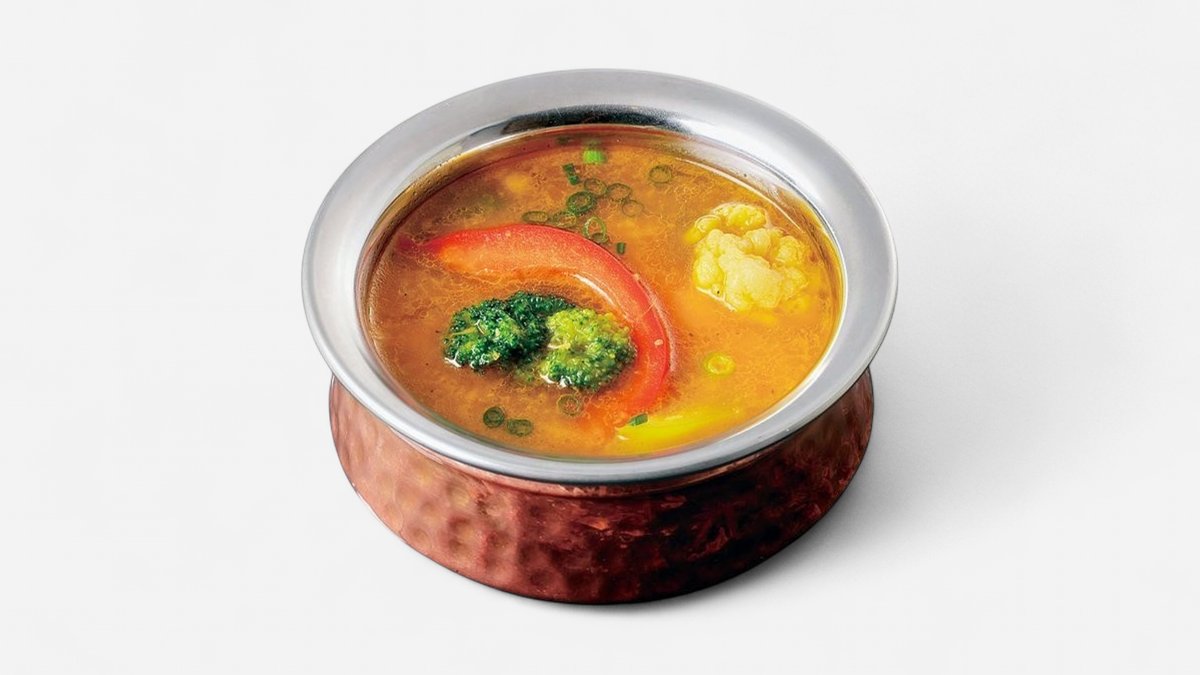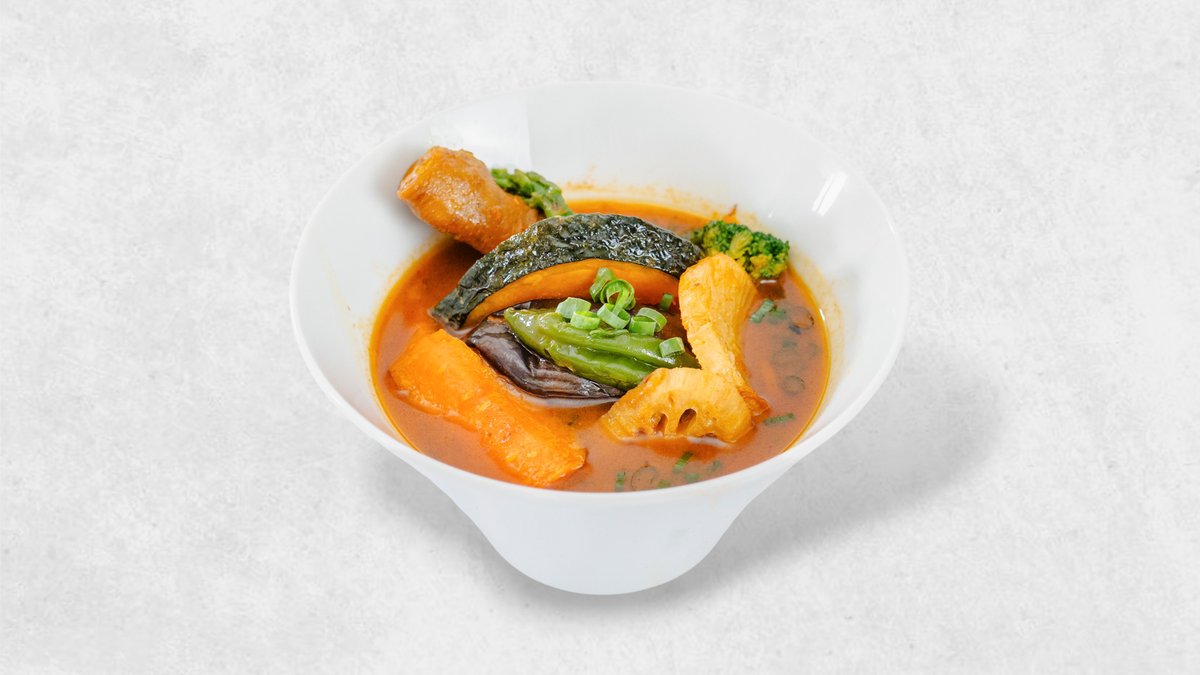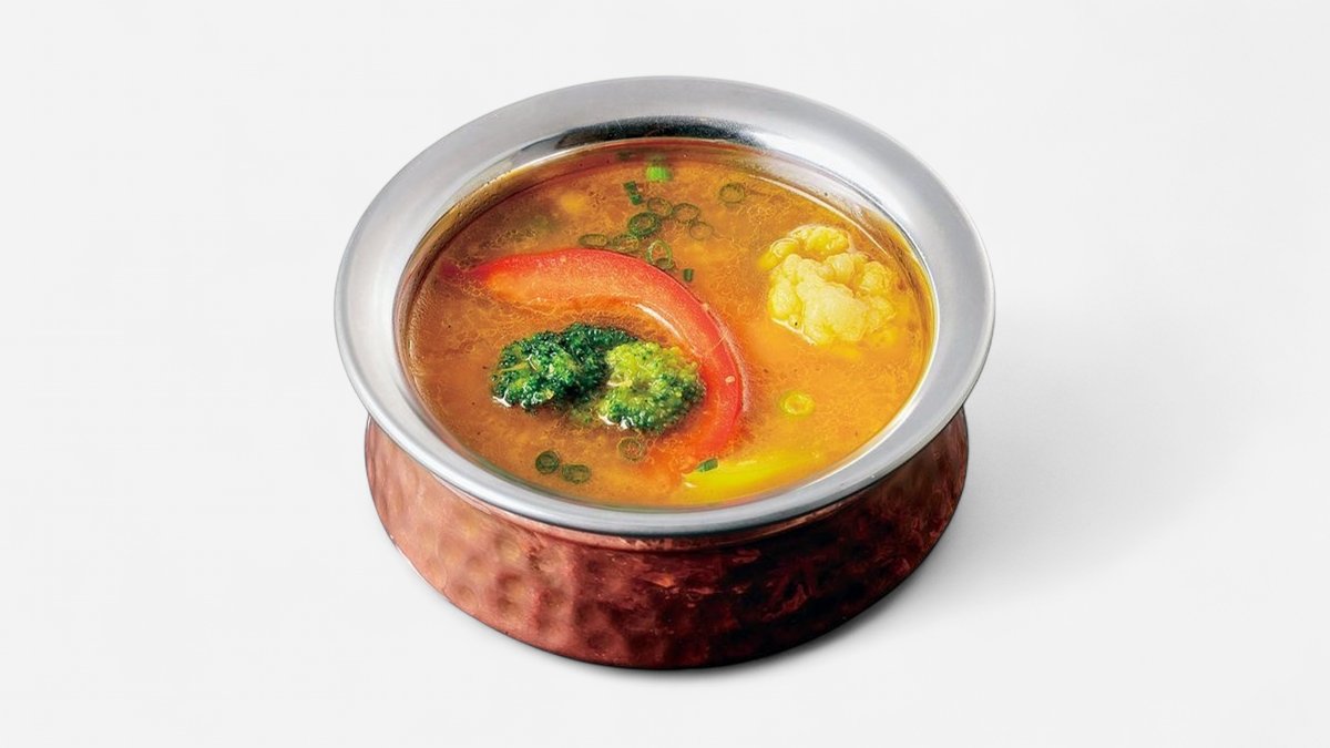 スパイスの効いたスープに、様々な具材が入ったカリーです。野菜やお肉の旨味が溶け込んだ、 バランスの取れた味わいです。