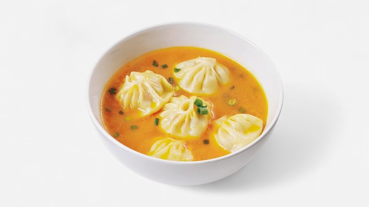 ヒマラヤ山脈のチベット文化に由来するモモ(ネパール風餃子)を、温かいスパイス香るスープで仕上げた逸品。