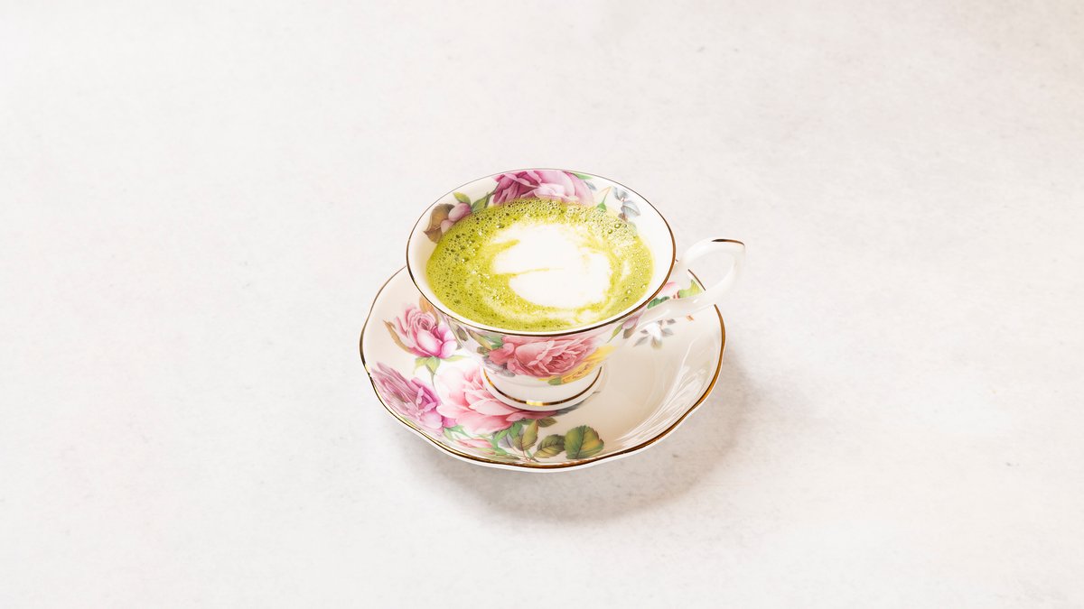 抹茶の風味とミルクが組み合わさった飲み物。
