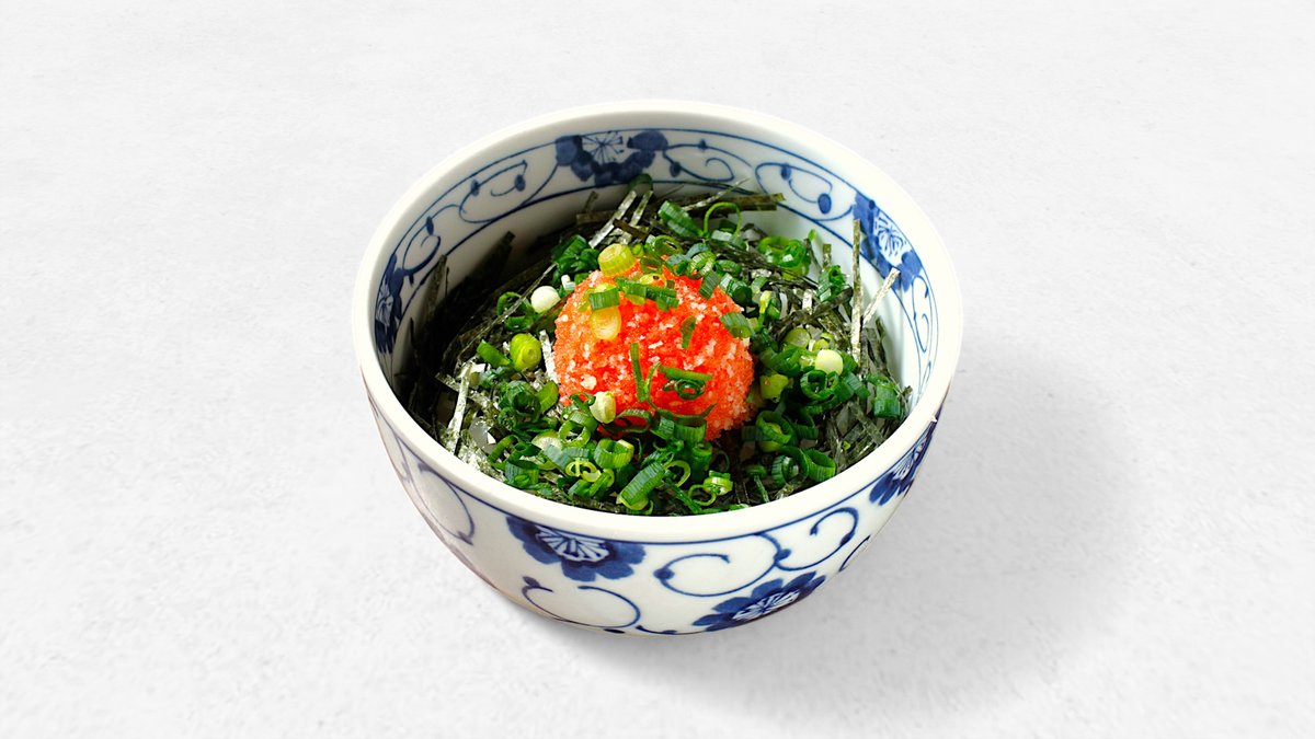 ご飯と相性抜群の塩気の効いたタラコをのせた丼です。