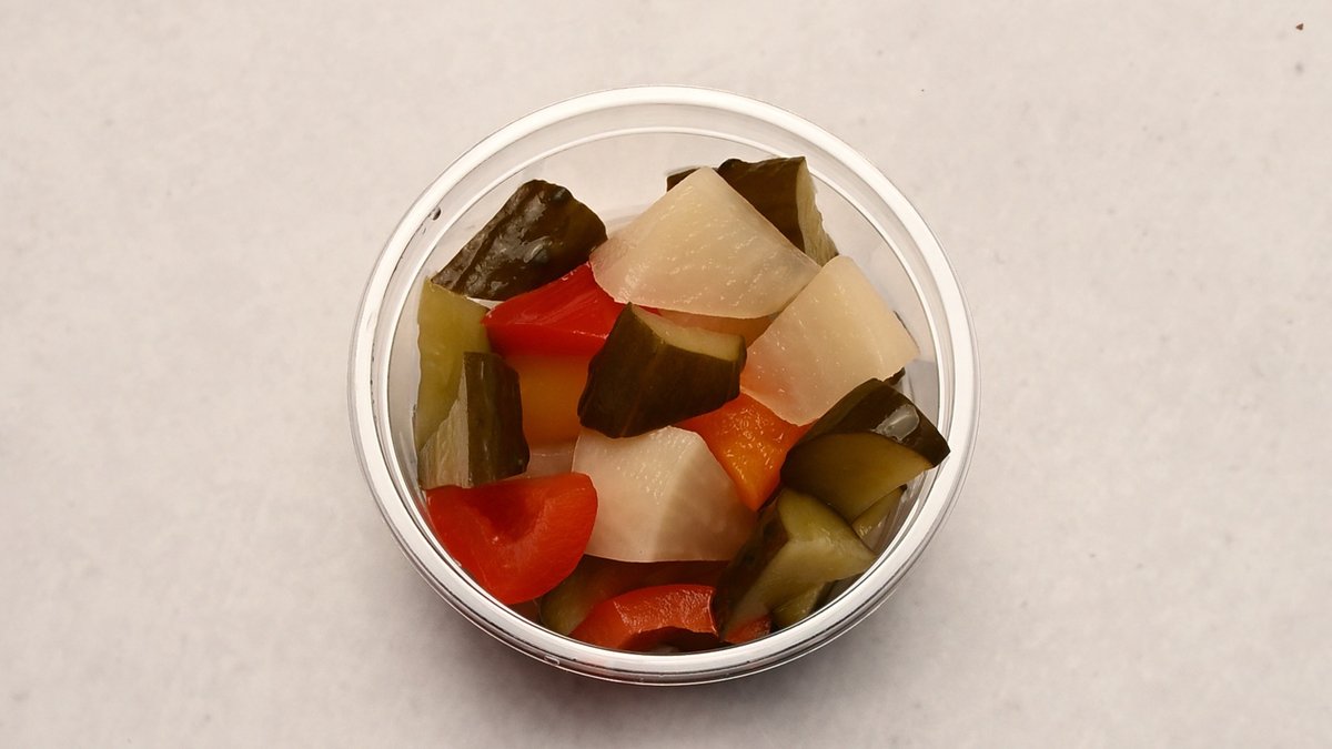 シャリュキュトリーにはピクルスが定番! 白ワインとリンゴ酢の味付けで甘くないピクルス。