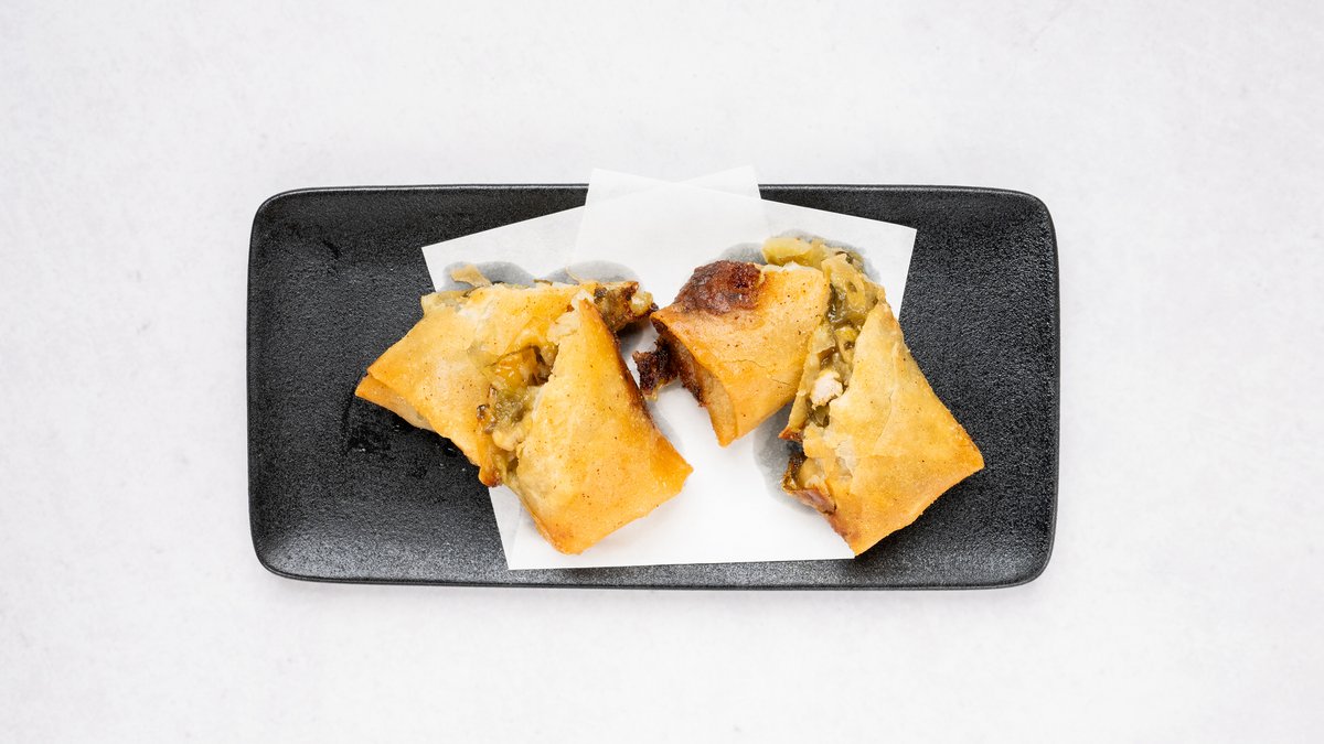 高菜の漬物と大根と鶏ももを合わせた和風の春巻きです!味はしっかりついてますのでそのままお食べいただけます。