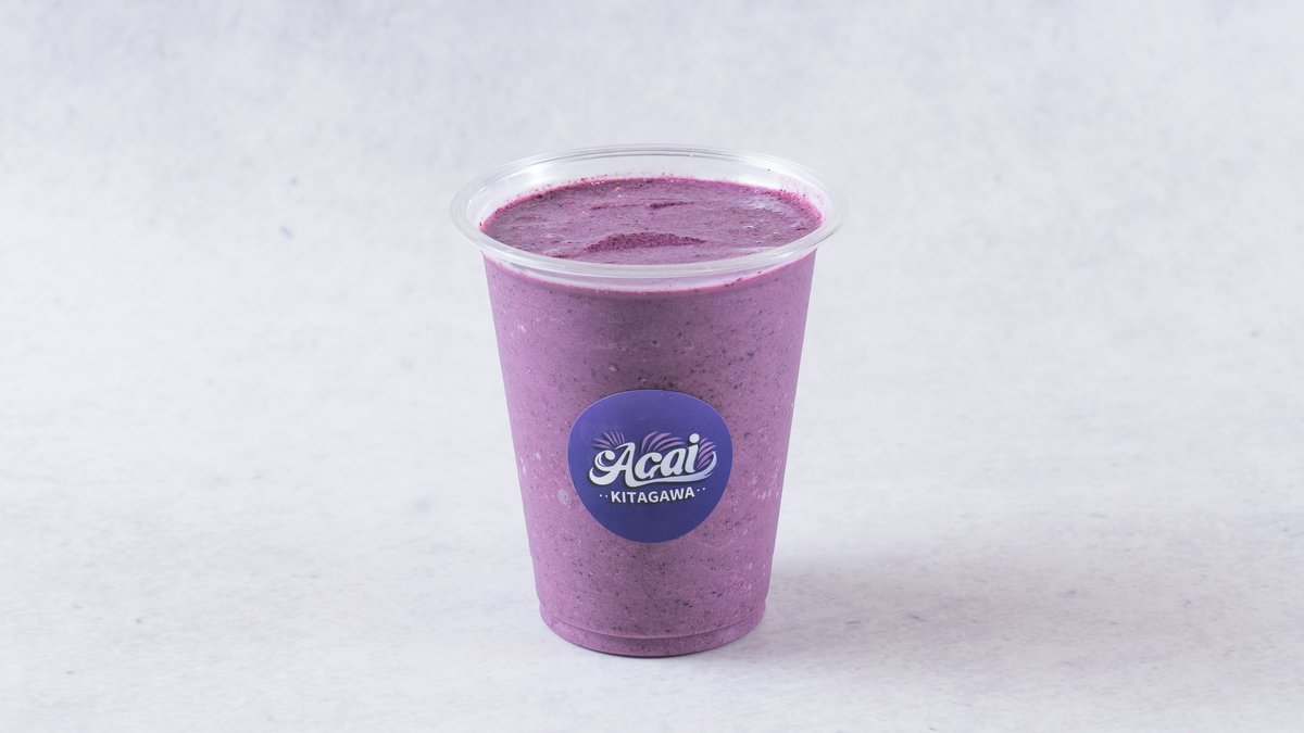 栄養価の高いアサイースムージーです。フルーティーな味わいで、健康志向の方にもおすすめの一杯です。 This smoothie uses nutritious acai and has a fruity taste, making it a great choice for health-conscious people.