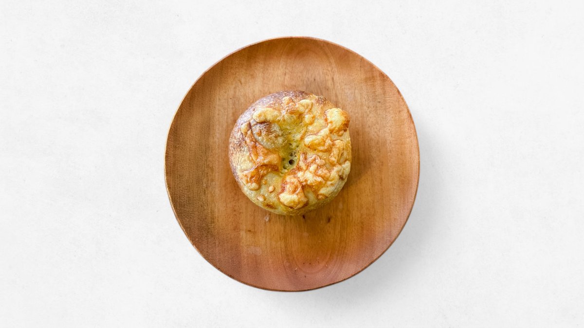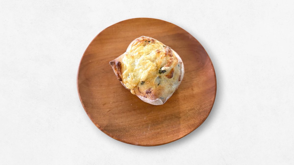 スパイシーなカレー風味と、濃厚なチーズが絶妙に融合したベーグルです。外は香ばしく、中はもっちりとした食感が特徴です。ランチやおやつにぴったりの一品です。