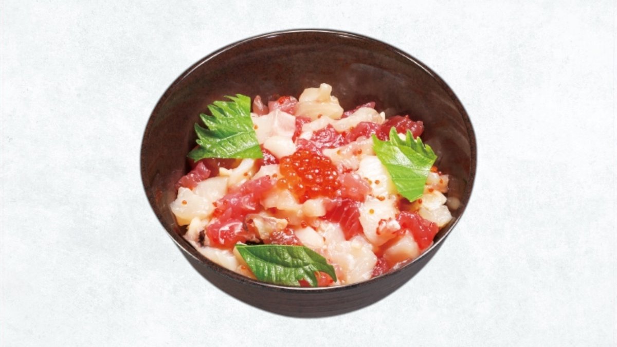 旬の海鮮(旬の鮮魚)・いくら・大葉・とび子・シャリ ※平日の17時まで限定商品です。 ※季節・天候・水揚げ状況などによりネタが変更となる場合があります。 ※丼1つにつき、はしを1膳お付けしております。 追加でお付けすることはできません。 ※大盛/小盛などの変更はできません。 ※トッピングの追加・変更できません。 ※お召し上がりは1時間以内にお願いします。