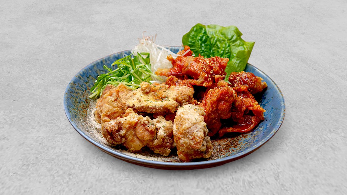定番のヤンニョムチキン、ほんのり甘いチーズパウダーチキンとの2種セット。 ※アレルギーをお持ちの方は「お店にコメントを追加」に御記載下さい。