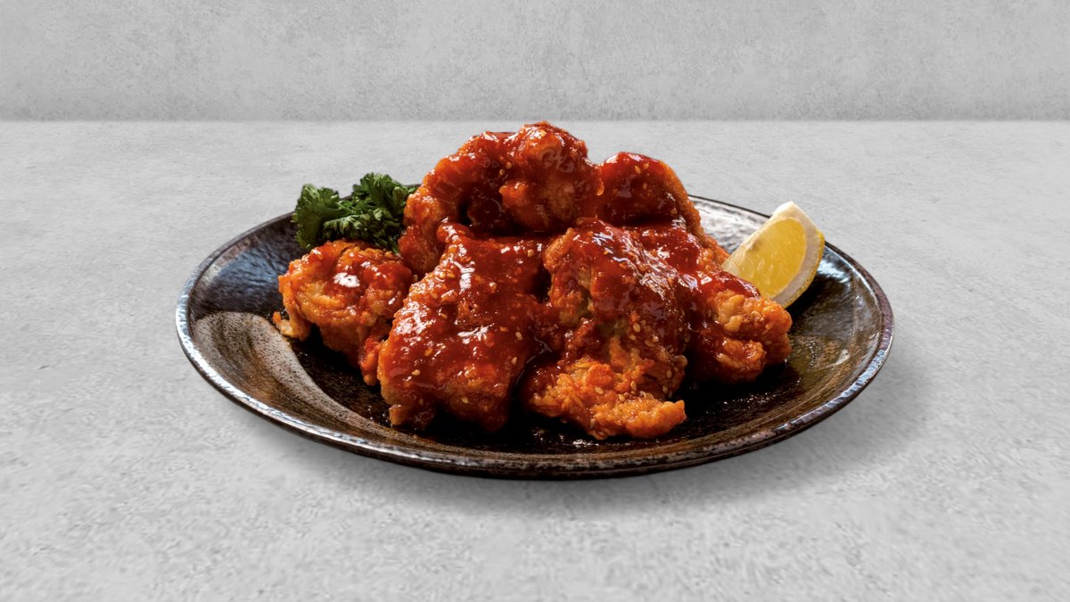 鶏の唐揚げに甘辛ソースを絡めた韓国料理の定番メニュー。 ※アレルギーをお持ちの方は「お店にコメントを追加」に御記載下さい。