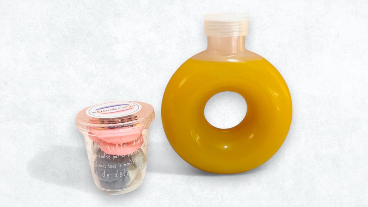 ドリンクとスイーツのお得なセットです! マカロンと、ドリンクの種類をそれぞれオプションにてご選択ください。 ボトルドリンクはドーナツ型もしくはクマさんの形になります。容器のご指定はいただけませんので、ご了承ください。