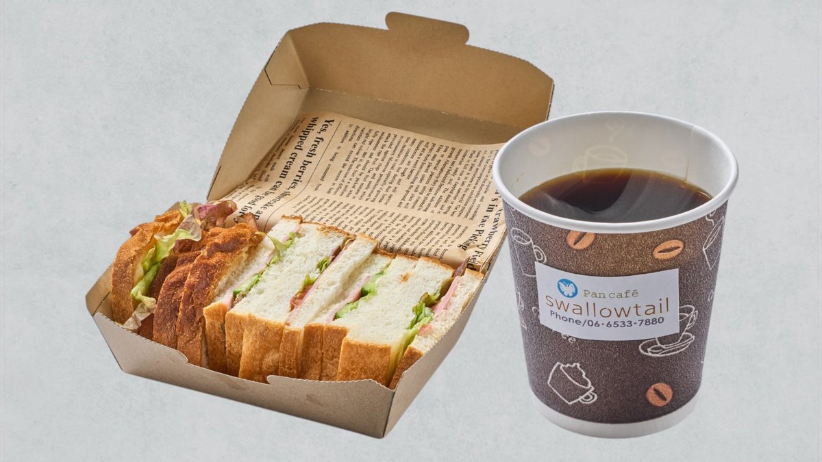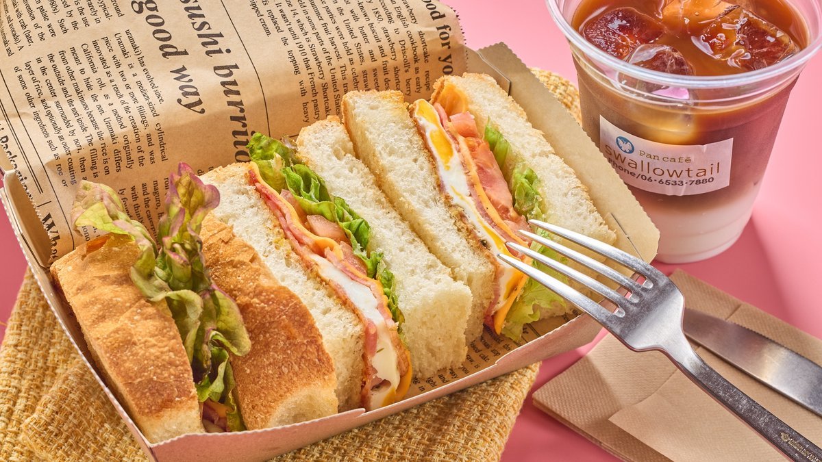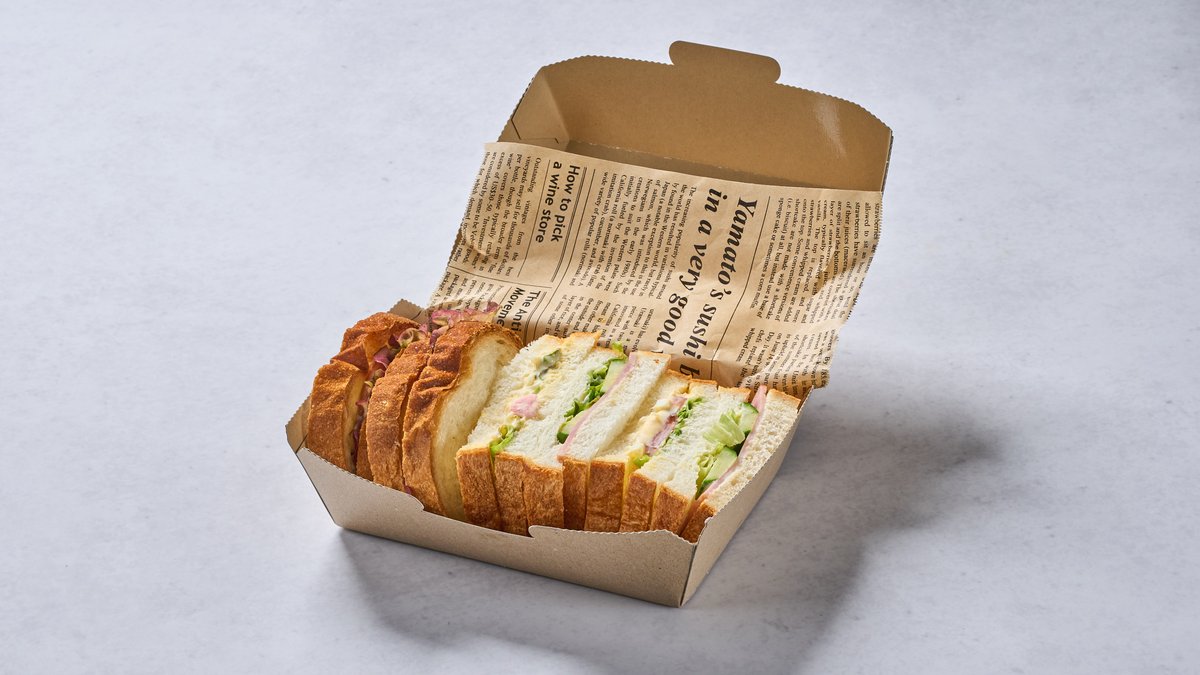 自家製の山型食パンを使用したサンドイッチです。フワフワのパンで優しくサンドしました。