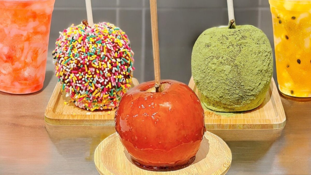 様々なフレーバーのりんごあめをご用意しております🍎お気に入りのドリンクとともにお楽しみください。