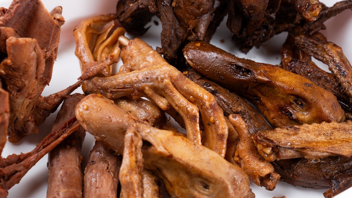 首、骨、タンなど、鴨特有の部位に麻辣または甘辛い甜辣(ティエンラー)の味付けをした、風味豊かな珍味です。