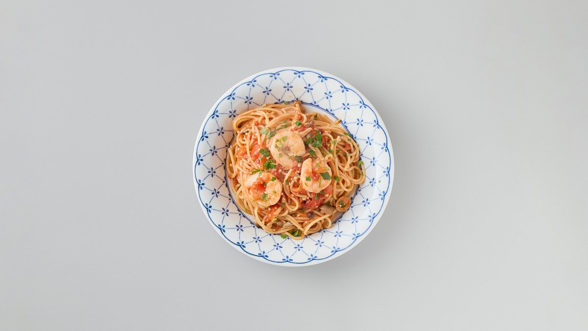 エビときのこのトマトパスタ