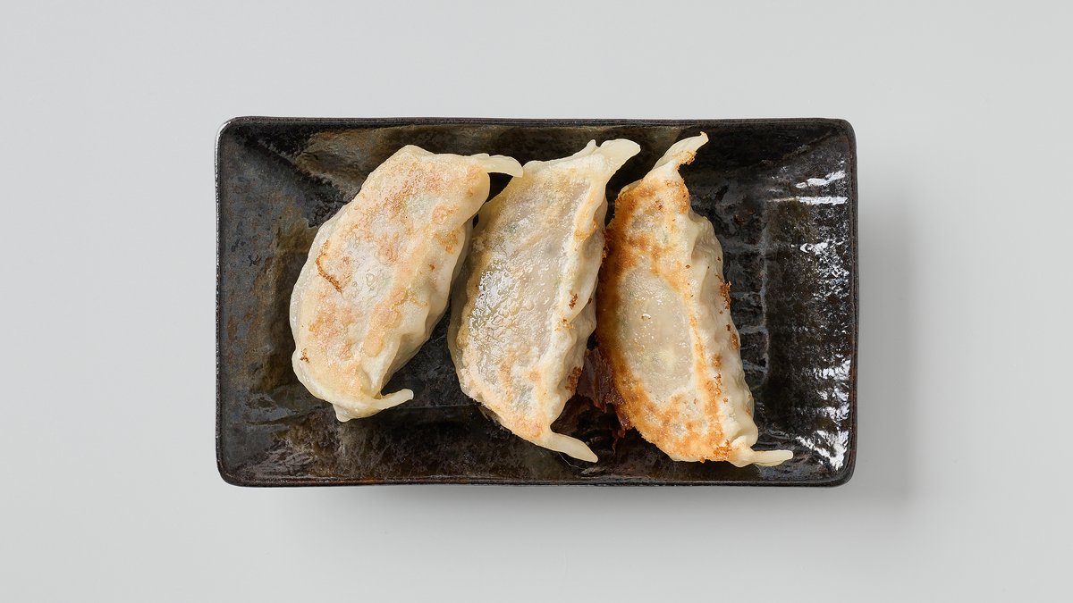 大きめサイズの餃子で、ジューシーな具材がたっぷり詰まった食べ応えのある一品です。外はカリッと、中はふんわりとした食感が楽しめます。