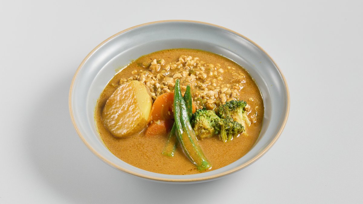自家製のチキンスープをベースに、20種類以上のハーブとスパイスを贅沢に使い、淡麗でキレのある味わいに仕上げました。あっさりコクうまが特徴のスープカレーです。※レンジ対応の容器を使用しています。