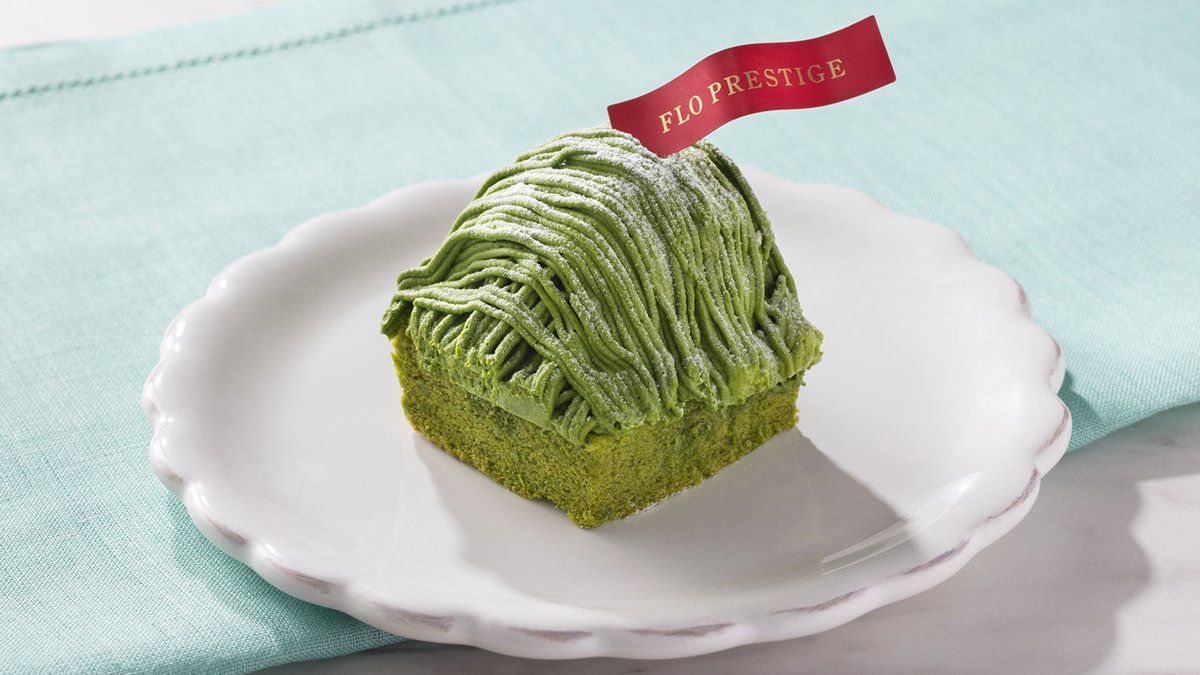 抹茶シフォンにシャンティクリームを絞り、抹茶モンブランクリームでデコレーションしました。 ※メッセージプレートの取扱はありません。
