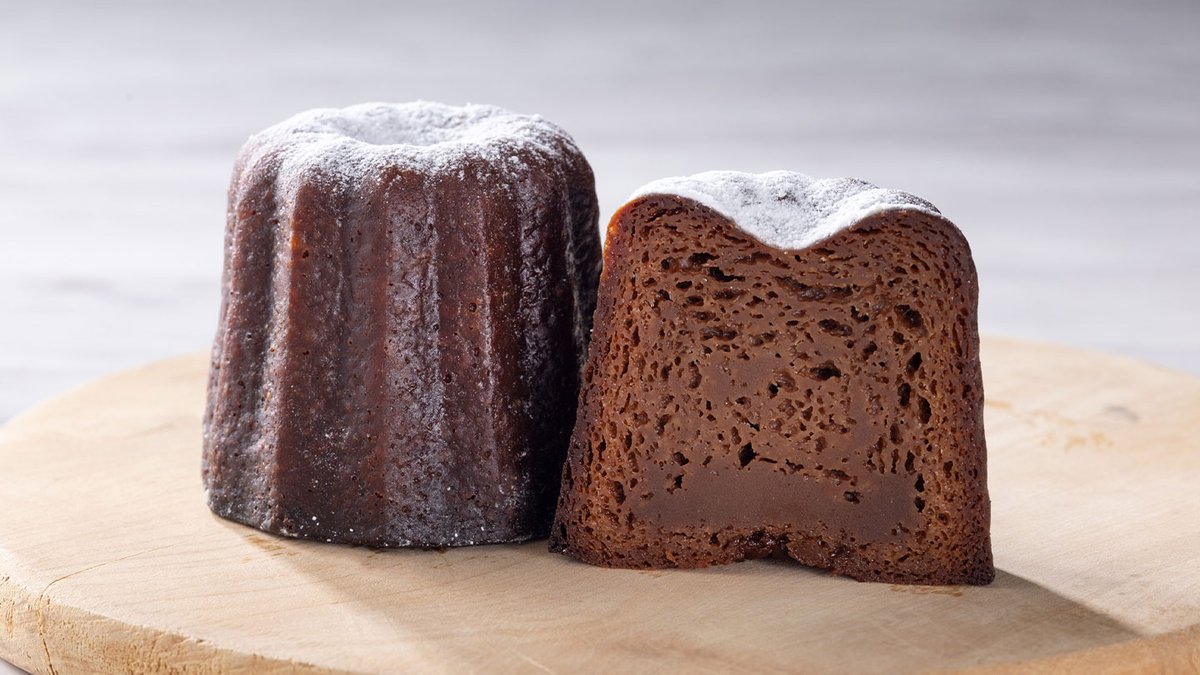 ラム酒を加えた生地を、表面がしっかりと色づくまで焼き上げました。チョコレートの風味豊かなカヌレです。冷蔵で3日間お日持ちします。