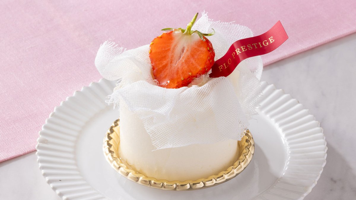 チーズムースにフランボワーズソースを入れてガーゼで包み、いちごをトッピングしました。 ※メッセージプレートの取扱はありません。