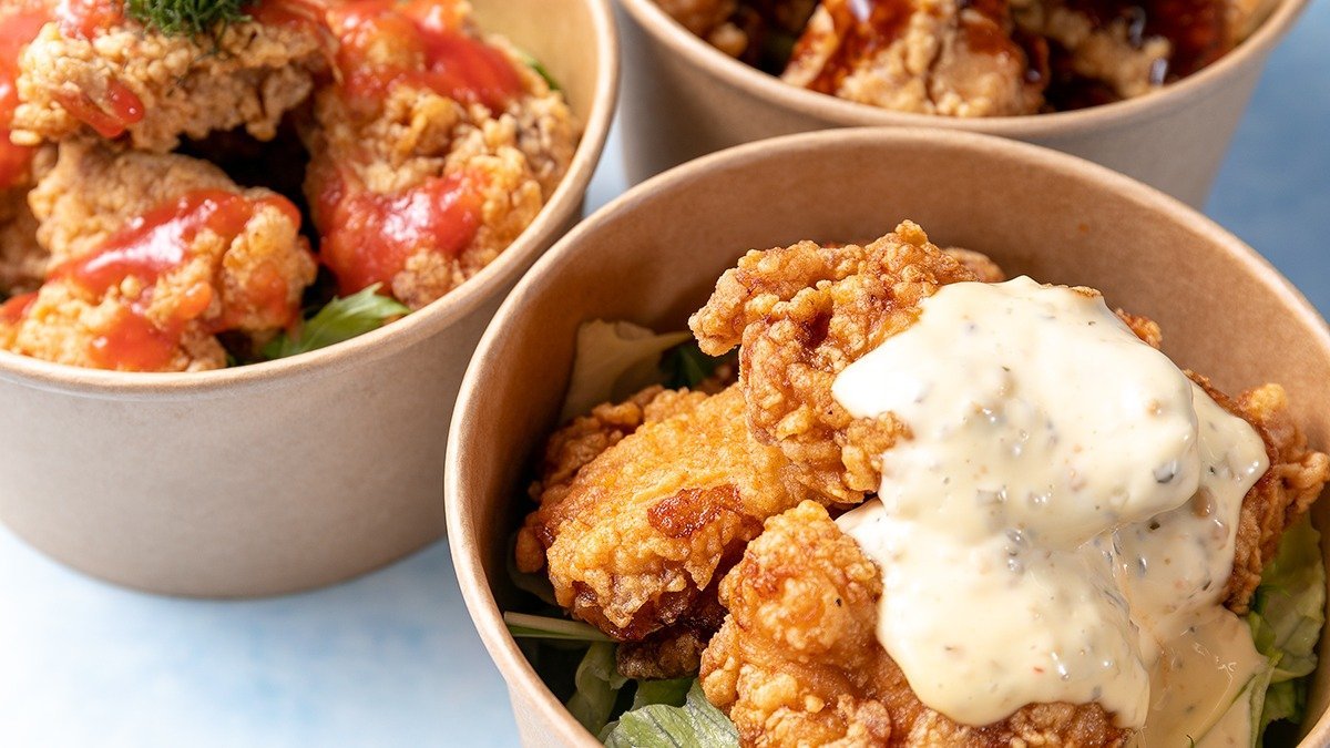 北海道から揚げバンビーノでは自家製の旨味のあるタレで漬け込んだ大ぶりのから揚げのデリバリー専門店です。トッピングも豊富で色々な味をお試しください🍗