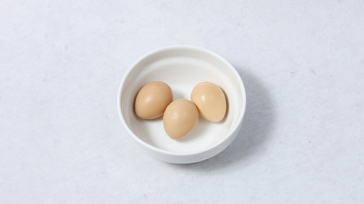 可愛らしいサイズのうずらの卵が3つ。プチッとした食感と優しい味わいが楽しめます。