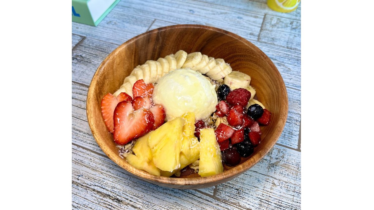 季節のフルーツがたっぷり!バナナ、パイン、ベリー、イチゴなど色とりどりのフルーツがぎゅっと詰まった、贅沢フルーツアサイー。ビタミンチャージで、毎日にちょっとしたご褒美を。