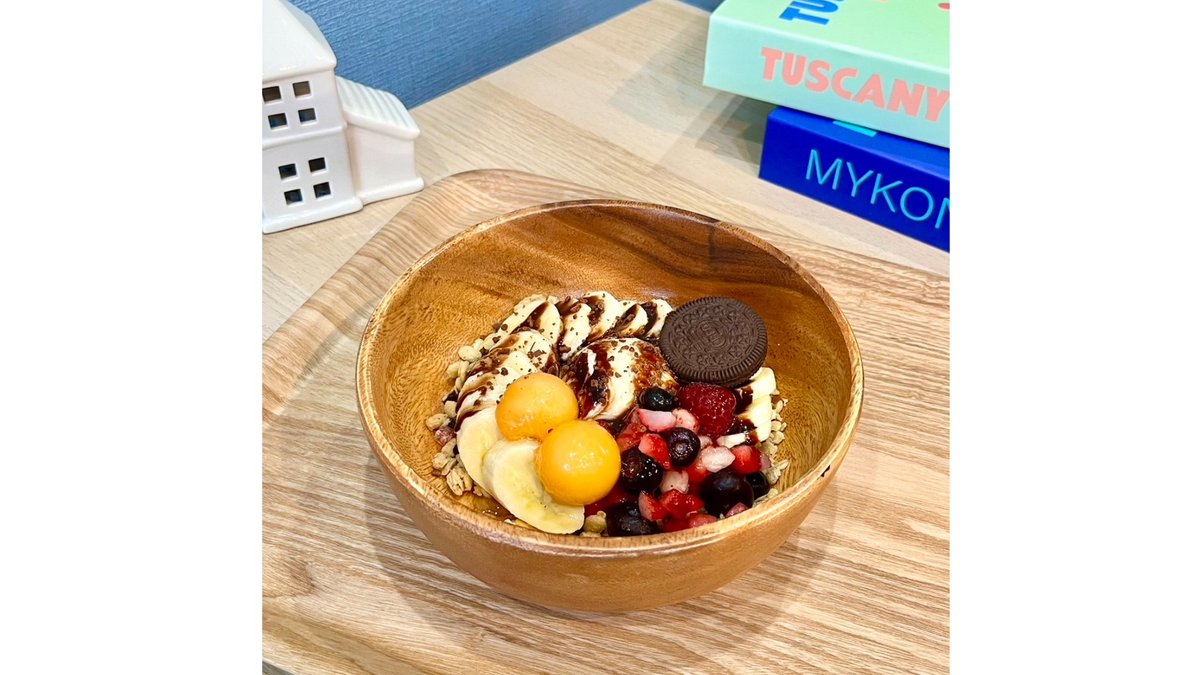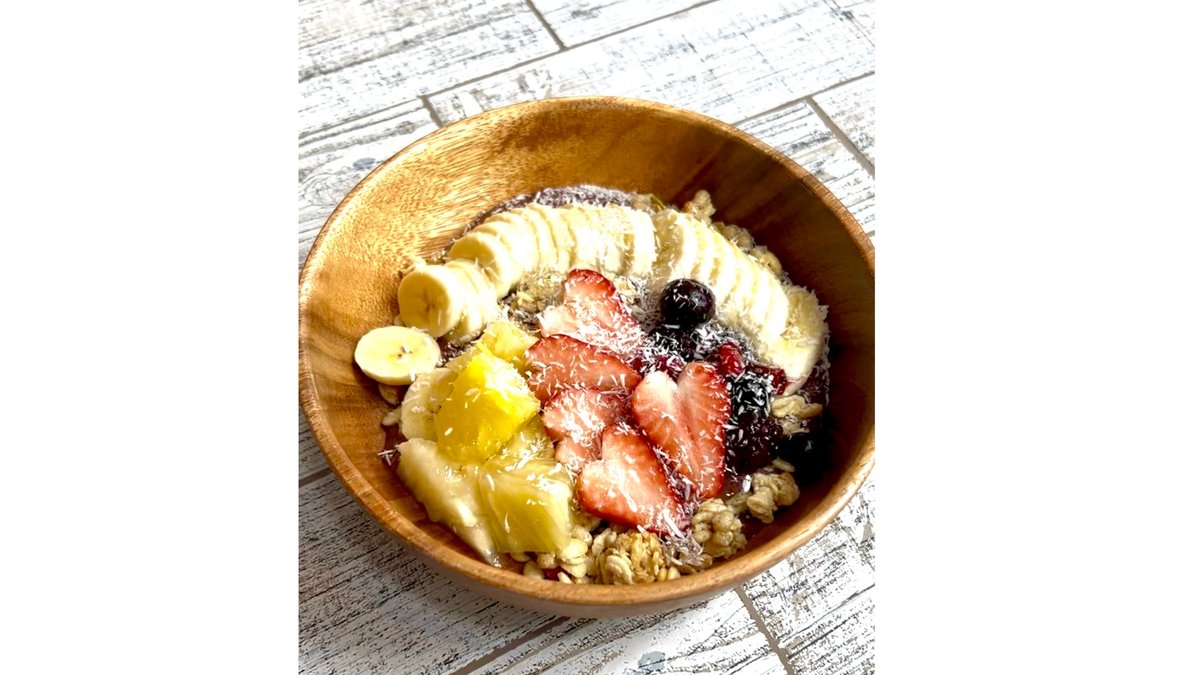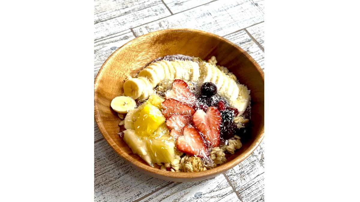 アサイースムージーにフルーツやシリアルをトッピングした満足度の高い美容食です。