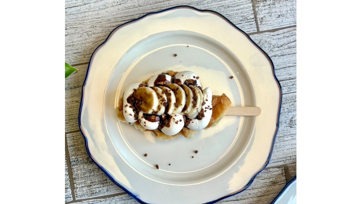 定番のチョコ×バナナに、ふんわり生クリームを添えて。バナナの自然な甘さとチョコのコクが絶妙にマッチし、子どもから大人まで幅広く人気のメニューです。