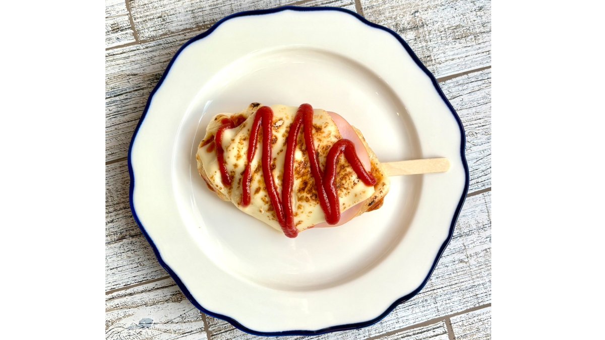 香ばしく焼き上げたクロッフルに、ジューシーなハムととろけるチーズをオン。ケチャップがアクセントになり、軽いランチや軽食にぴったりの一品です。