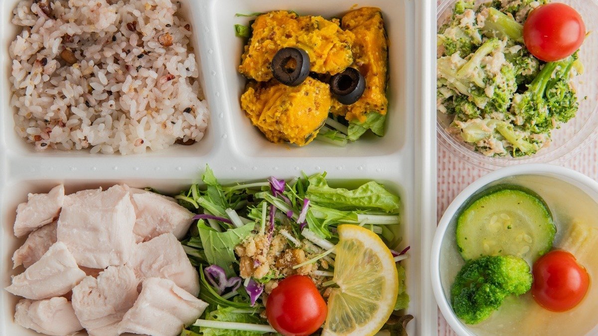 ★当店おすすめ★好きな物を選べるお得なワンプレートセットです。 各BOXセットの、カロリー数、タンパク質量表示(当社調べによる)は選択したサラダ等によって異なります。(ブロッコリーときのこの塩麴サラダに設定)