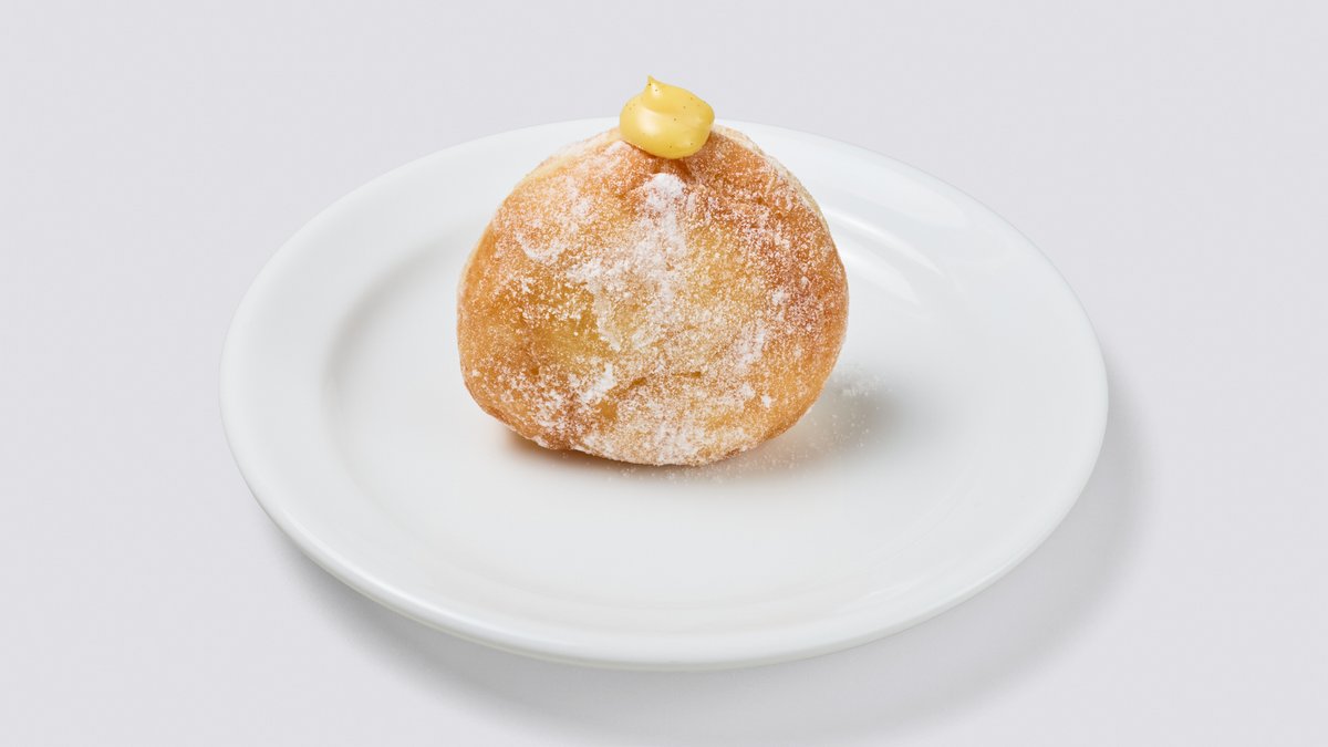 ふっくらとしたドーナツ生地に、なめらかで濃厚な自家製カスタードクリームをたっぷりと詰め込みました。定番人気の味わいです。 / Fluffy donut generously filled with smooth and rich homemade custard cream. A perennially popular classic flavor.